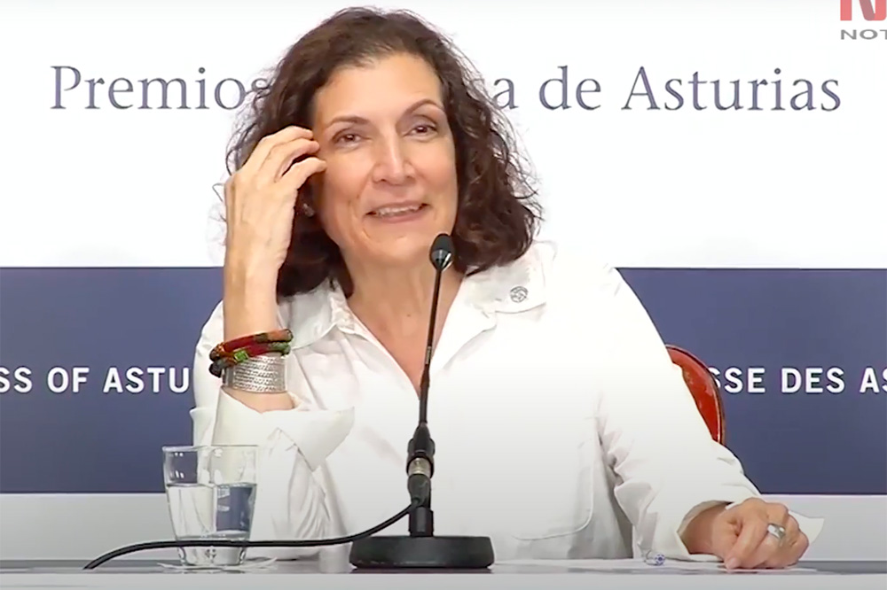 Photo: Alma Guillermoprieto at a press conference after winning a Princess of Asturias Award in 2018.